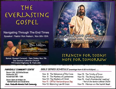 Our Parksville Adventist Faith Community is hosting Ron Nelson for a Bible Study Series you will not want to miss!